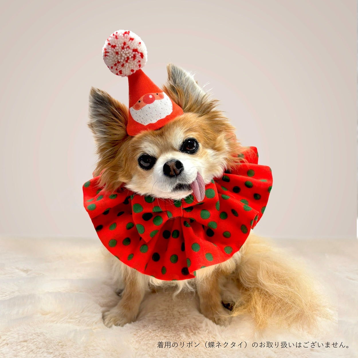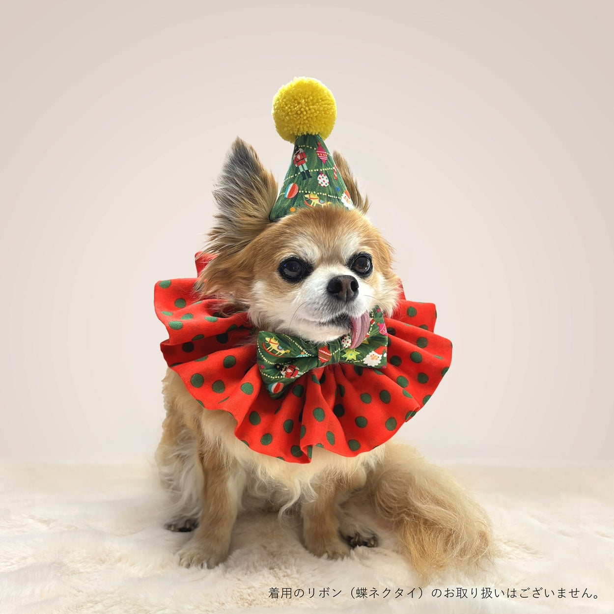 「クラウンカラー(CLOWN COLLAR) for Christmas(クリスマス限定)」(別売)とのセットアップコーディネートがオススメです。注)POMPOMHATとCLOWN COLLARは使用している生地が異なるため、多少色に差異がある場合があります。あらかじめご了承ください。